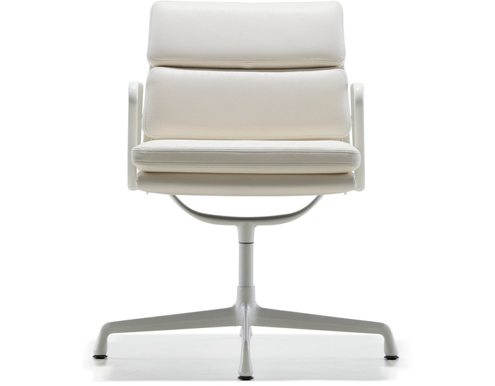 Charles与RayEames夫妇是20世纪最有影响力的设计师,卓越的设计涵盖了家具、建筑、影像与平面设计。他们从二次世界大战中美国海军的实验计画中学习经验并发展可谓是现今工业中使用模铸胶合版的先锋,这对设计界的超级夫妇档自1940年参与了由MOMA举办的有机家具设计大赛,自今已有近百件他们的作品被各大博物馆所永久典藏。 Eames® Soft Pad Side Chair(伊姆斯软包会议椅)是夫妻俩1958年设计的,是在全铝系列的基础上发展的另一系列Eames产品。舒适系列在全铝的椅架上增加了皮革制的柔软坐垫和靠背,高级铝合金制作,压模四星脚,可旋转。背垫和坐垫,采用西皮,具有透气性强,内部填充高密度定型绵,不易变形,不老化,依人体坐姿,符合人体工学,耐水及对人体无害等优势。椅子扶手选用优质电镀铝合金扶手,手感舒适,永久不生锈。转椅底盘为多功能底盘,可以保护使用者长时间坐用腿部健康,且作为高度可多定位调节。气压棒采用的气杆是正规厂家出产的外贸气杆,每一根气杆都有钢印,经过严格SGS检测的才可出厂,旋转、升降自如基本无声响,使用寿命长,可承受250kg,可升降数万次,将椅面调至与膝盖同高时,使用者坐下后双脚跟可垂直平放于地上,且大腿与地面平行,最符合人体工学理论,使用者长期久坐,也不想疲惫。办公椅脚为铝合金材质永久不生锈、承受能力强,安全更放心。椅子脚轮采用优质电镀片脚轮,耐用而美观,可以随意变换位置,贴心更方便,具有防震及防松脱,让椅子的安全性能更加可靠。