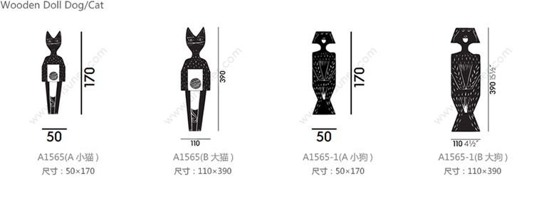 Wooden Doll Dog/Cat 系列尺寸/示意图