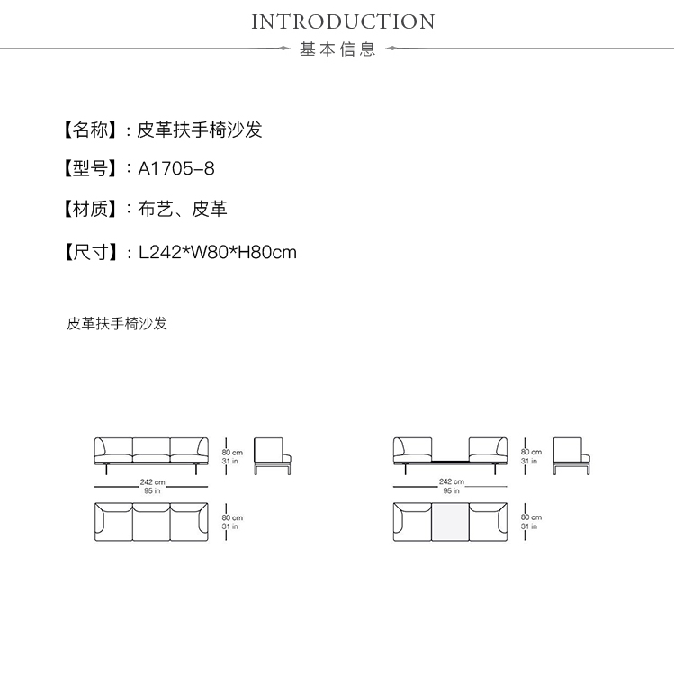 L242*W80*H80cm