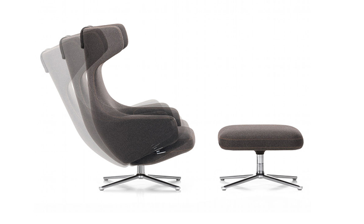 grand repos lounge chair and ottoman(grand repos 休闲椅&脚踏)由设计大师Antonio Citterio所设计的独特的,绝无仅有的休闲椅系列,椅子的创作面临的挑战如同伊姆斯夫妇当初设计著名的伊姆斯休闲椅一样,但正因如此,才能成为绝世经典。grand repos系列休闲椅采用钢制铝合金脚架、聚氨酯海绵填充、高级布艺扪面,可随意调整坐姿和高度,也可以放平躺,配上舒适的羽毛衬垫,无论阅读或者休憩,都非常舒服,符合人体工学,高档舒适,是办公,会议的理想选择。意大利设计师和建筑师 Antonio Citterio赋予了这边椅子永恒的优雅气质与无与伦比的舒适,是当代设计的经典,无论用在办公、商业、家庭都是非常高贵大气的。
