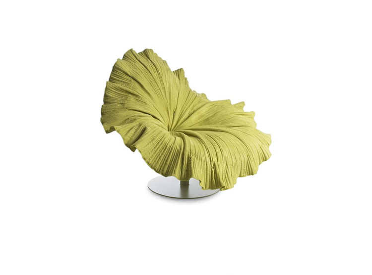 菲律宾设计师 Kenneth Cobonpue 设计了此款子名叫「开花 (Bloom) 」的椅子(Bloom Easy Armchair)。拟态一朵花盛开的模样,采用纯手工工艺将微纤维织物缝入碗状树脂椅座上,听起来就觉得很有科技感对吧,椅子下面的圆盘基座由钢铁制成,所以产品本身是十分的牢固安全的。