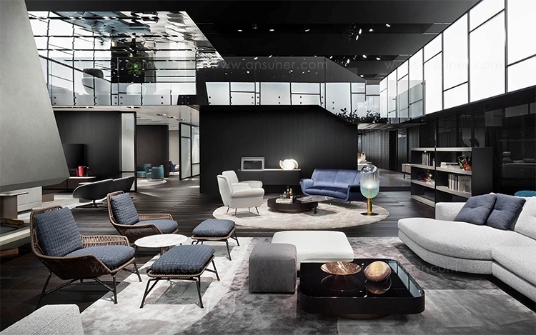 除去了2012年原版的填充物后,王子的“绳索”在室内展示了外壳的骨架,现在它的特点是由皮革覆盖的管状弦交织在一起。 设计灵感来自五十年代的美国现代主义,强调了锡色铝基通过复杂的压铸技术实现。扶手椅的柔软度由织物或皮革装饰的坐垫和靠垫突出。 米诺提产品的优势之一是对细节的剪裁讲究,这一点在圆形轮廓线的执行中得到了突出体现。圆形轮廓线的特点是贯穿整个皮革长度的独特接缝。王子的“绳索”室内有四种颜色——鸽灰色、灰色、烟草和深棕色——扶手椅可以有一个脚凳,上面有相同的风格标志。