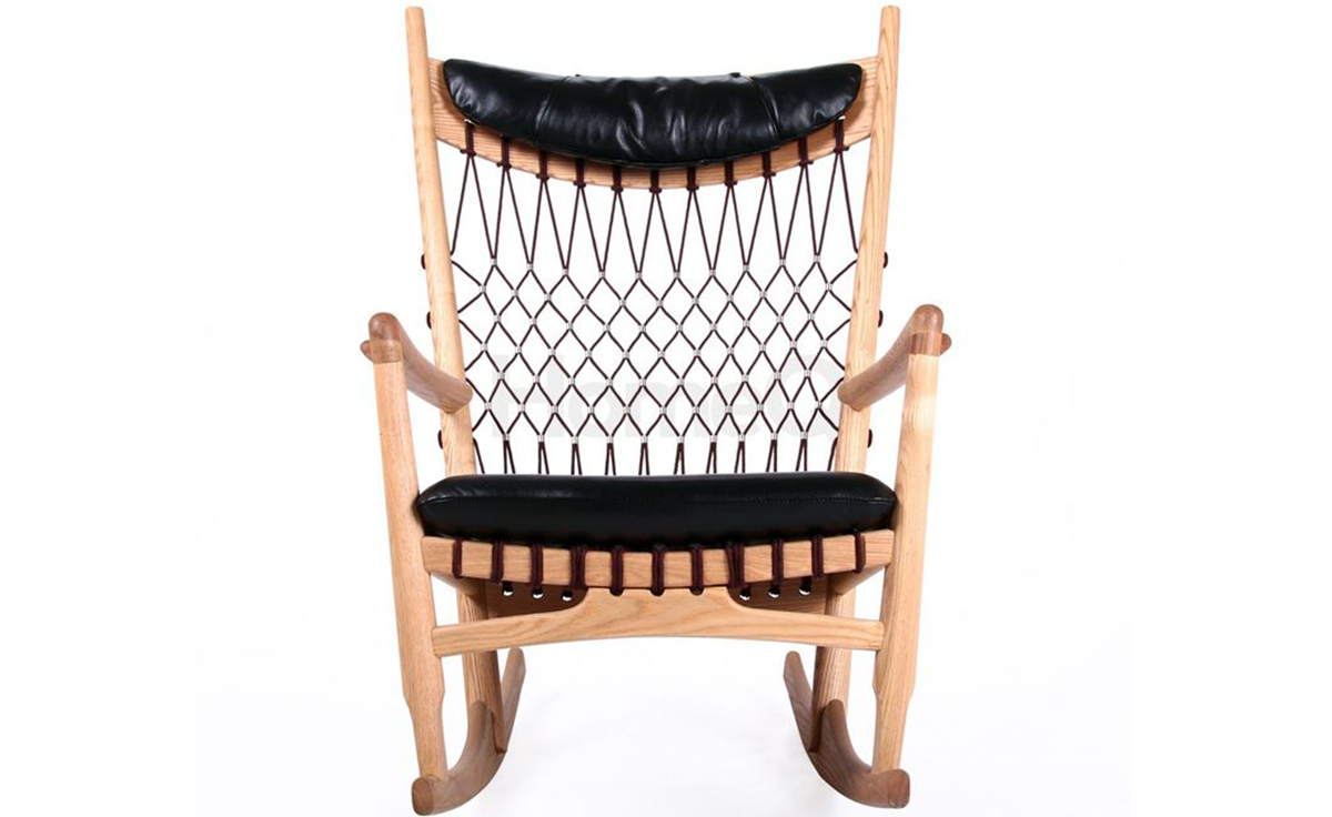 Rocking Chair(摇椅)是大师Hans J. Wegner设计的众多摇椅中的经典之作。摇椅具有简洁的线条,精准的的人体工学结构,是Hans J. Wegner在1944年为身怀六甲的妻子设计,扶手前端微微向外展开,是为让妻子方便起身。实木制成,轻便耐用,简约单纯,仍于潮流中立于不败之地,为Hans J. Wegner最受欢迎的经典作品之一。我们已经能从中感受到圈椅的影子。摇椅水曲柳制作,坐垫麻布软布(内部填充优质海绵),棉绳编织(有白色,黑色,棕红色可选)。