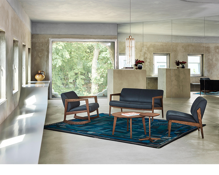 几何图形的轮,水曲柳或胡桃木或实木框架,优质环保高密海绵填充、外裹高级进口布艺或PU,做工精湛,这是860系列休闲椅的特征。非常舒适的坐垫和靠背,出的、动态的轮廓,适用于商业和休息环境。设计师Lydia Brodde说:“我尤其着迷于1960年代的设计及其清晰,几何的形式。 我想将这些元素转化为一个新的永恒。”。这就是她设计860的初衷。一把适用于任何环境的椅子,并可根据个人喜好赋予其个性化,860休闲椅做到了。实木的框架,有扶手和无扶手两种版本,在配上一个脚凳椅,保证了最大松弛度和舒适感。