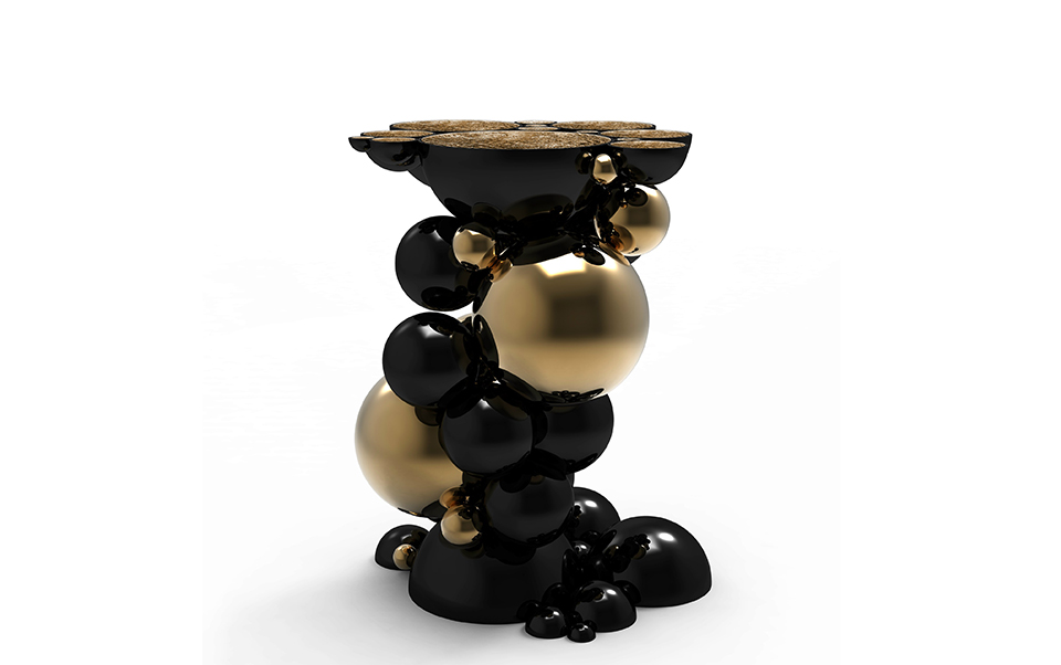 After our recent outstanding moment of inspiration - the creation of Newton dining table - we conceived a console inspired by this exclusive piece of furniture. Once again, we defy the laws of physics and redesigned this monumental console made from aluminum and lacquered in black, with a high gloss varnish. The spheres and semi spheres that complete this futuristic console are gold plated. This intriguing console is ideal for any modern living rooms, bedrooms and hotel lobbies characterized by luxury interior design furnishings.