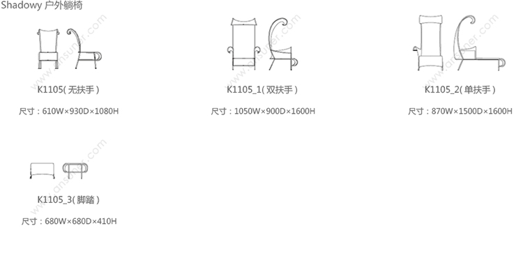 Shadowy-chaise longue 系列尺寸/示意图