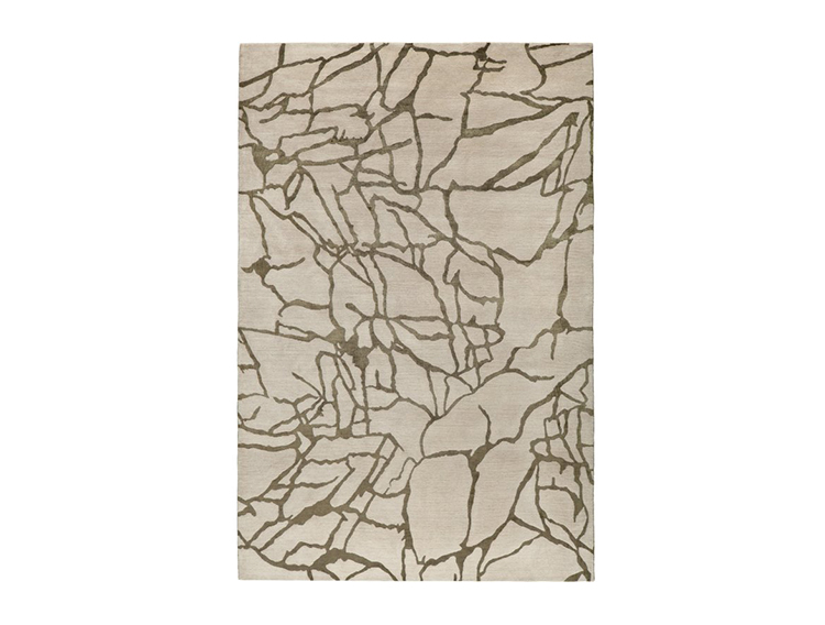 从石头和大理石的天然纹理中汲取灵感,当光线照射到丝线上时,Tracery地毯有机线条的变化和闪烁。 背景是西藏羊毛,呈暖灰色,图案为柔软的橄榄绿色丝绸。