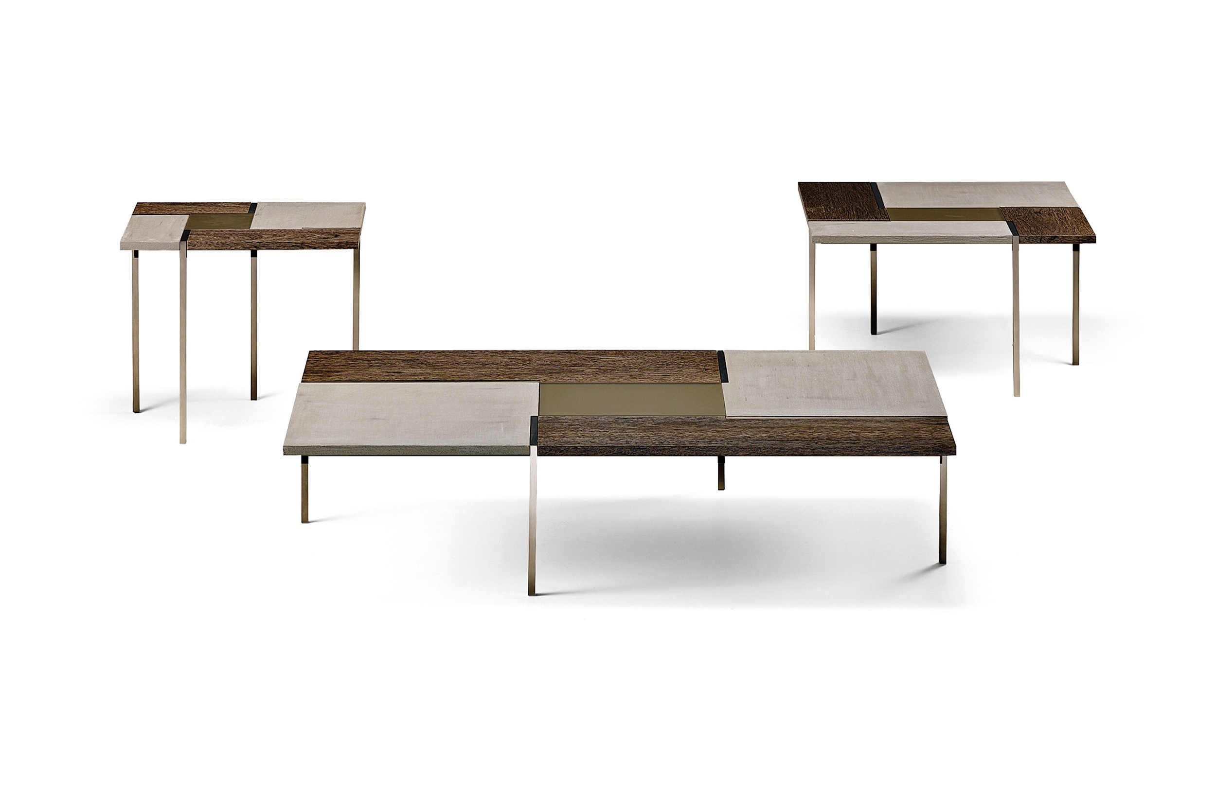 线性和严谨是Stijl表格的精髓,具有强烈的视觉冲击力和不同尺寸矩形组成的特定几何形状。采用中性色调和不同的材料,如水晶,水泥和木材的特性使其成为非常灵活的。正方形的金属腿, 棕色、 黄铜或钛制的, 都集中在桌面上。