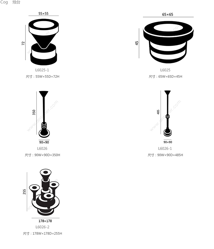 Cog 烛台 系列尺寸/示意图